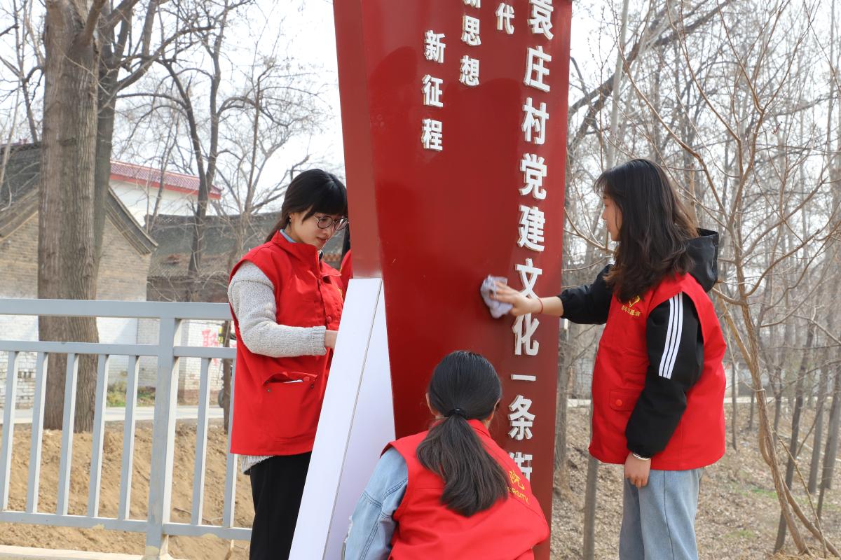 恰逢第41个植树节来临,在我校派驻袁庄村第一书记陈浩勇的带领下,来自青年志愿者协会的志愿者们拿起扫把、铁锨、抹布和锄头,将袁庄村党建活动一条街及文化广场打扫的一尘不染,并完成了袁庄村文化广场40余棵景观树的种植工作,极大地改善了当地村民的人居环境和文化氛围。