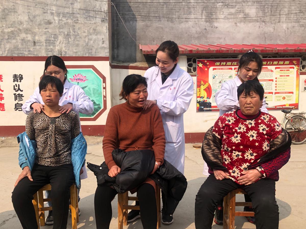 志愿者们为村民理疗推拿