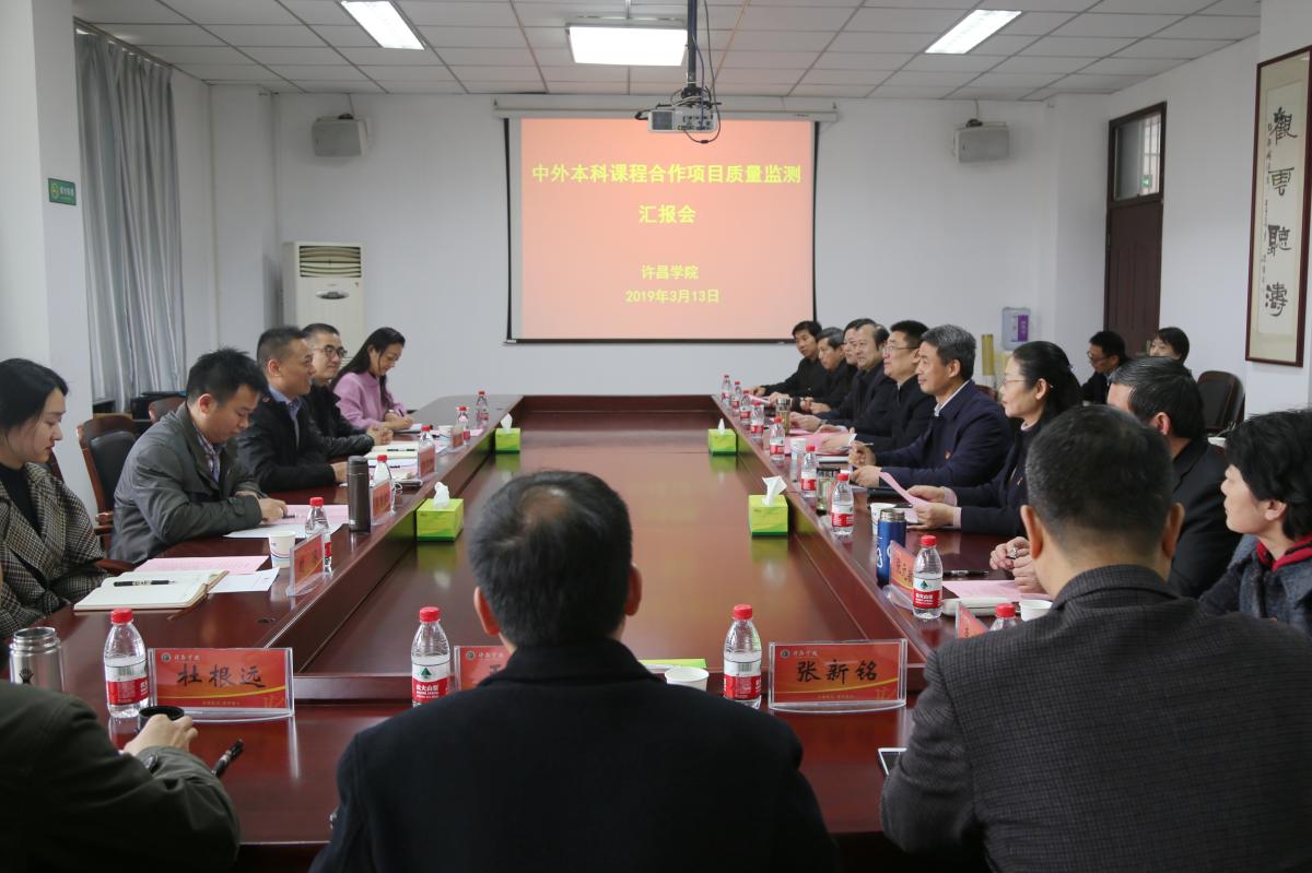 3月13日,河南省教育厅中外本科课程合作项目评估组一行5人到我校考核相关工作。中外本科课程合作项目专题汇报会在办公楼第一会议室举行。我校党委书记闫纪建、院长岳修峰、副院长崔斌出席汇报会,学校党政办公室、国际交流与合作处、国际教育学院、相关二级学院主要负责人参加了会议。汇报会由副院长崔斌主持。