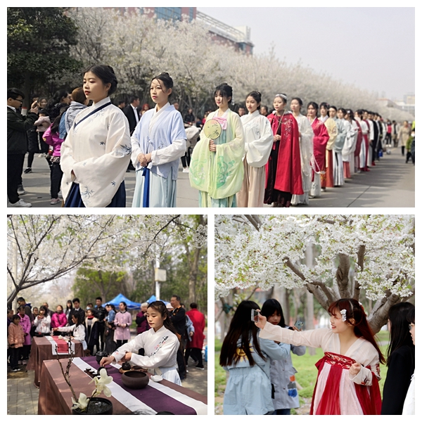 3月21日,我校第三届樱花文化节开幕。连日来,樱花大道上,时时处处都有师生们忙碌的身影,他们的才华、智慧、热情和用心,是美不胜收的一道靓丽风景线。学校的中原农耕文化博物馆、钧瓷文化艺术馆、地球科学馆、吴道子美术馆等免费开放。钧瓷文化艺术馆的工作人员介绍说:“这些天,参观者络绎不绝,团体预约人数每天近千人,好在我们提前在全校招募了志愿者来引导,他们天天都要工作十多个小时......”