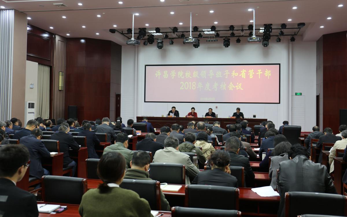 党委书记闫纪建代表校级领导班子向大会述职。他指出,2018年,许昌学院党委、行政在省委、省政府和省委高校工委、省教育厅的正确领导下,以习近平新时代中国特色社会主义思想为指导,团结带领全校师生员工,积极改革,务实工作,全面从严治党向纵深延伸,学校事业高质量发展。 一是深入学习贯彻党的十九大精神,认真落实管党治党主体责任,党的领导全面加强。二是加强社会主义核心价值观教育,牢固树立“三全”育人理念,立德树人系统工程深入实施。三是围绕根本任务,狠抓内涵建设,学校各项事业扎实推进。四是持续正风肃纪,积极营造良好政治生态,风清气正校园氛围更加浓厚。2019年,学校领导班子将以习近平新时代中国特色社会主义思想为指导,进一步深入学习贯彻党的十九大精神和全国教育大会精神,团结带领全校广大干部师生,全面落实学校事业发展规划,奋力创建富有特色的高水平应用型大学,以优异的办学成绩向新中国成立七十周年献礼。