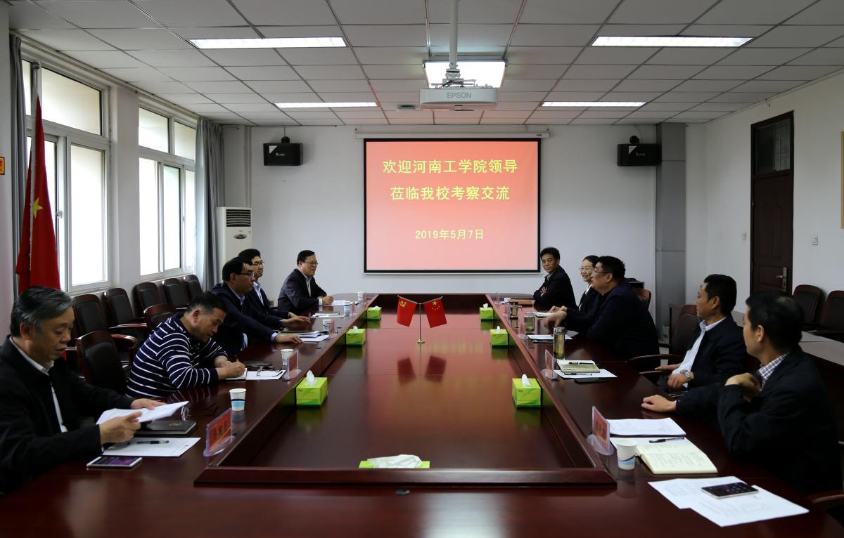 5月7日下午,河南工学院党委书记赵学通,党委副书记、工会主席李贵敏等一行5人,到我校考察交流。党委书记闫纪建、党委副书记孙海接待了考察团一行,党政办公室、党委组织部、人事处等相关职能部门负责人参加座谈交流。