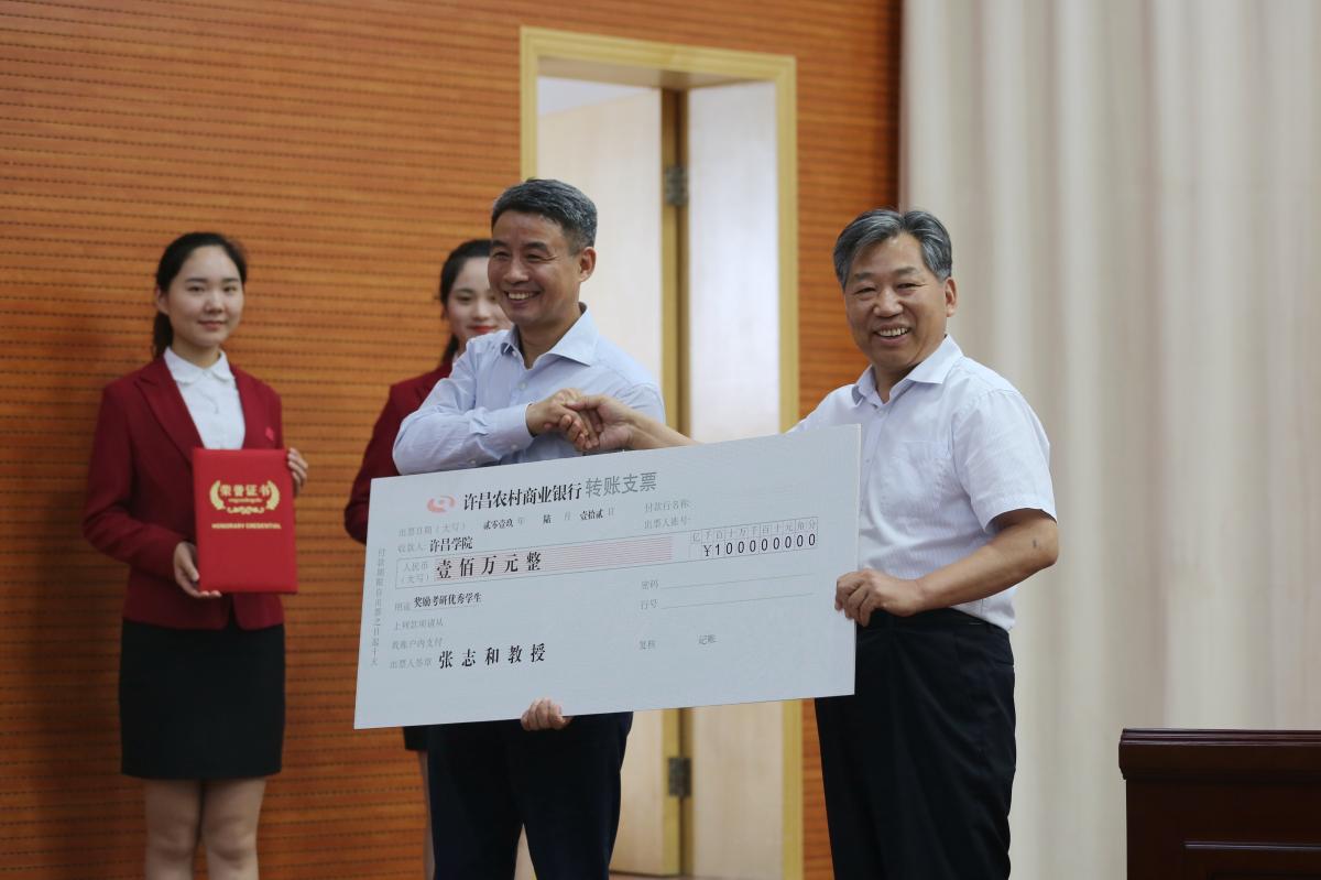 仪式上,中国教育基金会副秘书长成梁先生对张志和教授回馈母校的善举表示高度赞誉,他表示一定会支持和做好善款的管理指导工作,让每一笔善款都能及时准确地帮助到许院学子。仪式现场,与会领导与嘉宾为获奖学生颁发了荣誉证书。