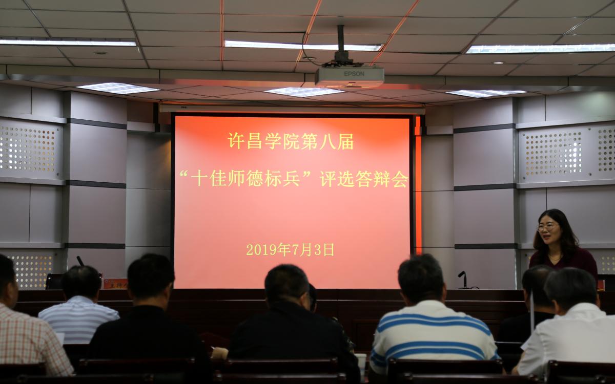 7月3日下午,我校第八届“十佳师德标兵”评选答辩会在办公楼第三会议室举行。来自全校各单位的18名“十佳师德标兵”候选人参加评选答辩。评选答辩会由党委宣传部副部长王彦主持。