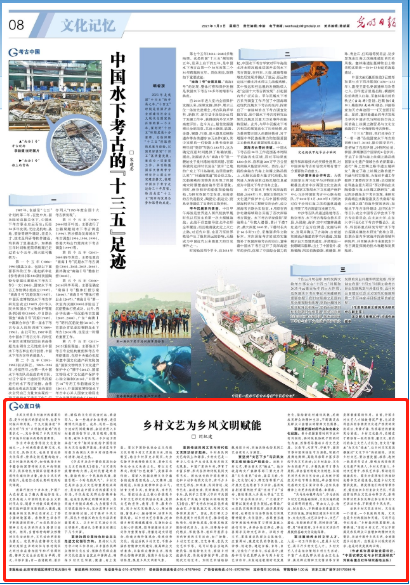 2021年1月3日,《光明日报》第8版以《乡村文艺为乡风文明赋能》为题,刊发我校党委书记闫纪建教授署名文章。