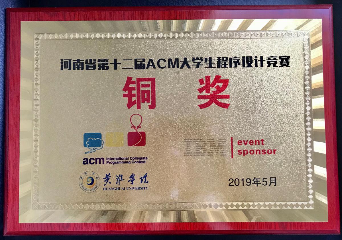 近日,由河南省计算机学会主办河南省第十二届ACM大学生程序设计竞赛在黄淮学院落幕。我校信息工程学院教师邱颖豫、李梅莲和鄢靖丰指导,绳金龙、张晓宇、宋浩东等学生组成的参赛队经历了5个小时的高强度比赛,获得铜奖,实现了我校在ACM竞赛中零的突破。