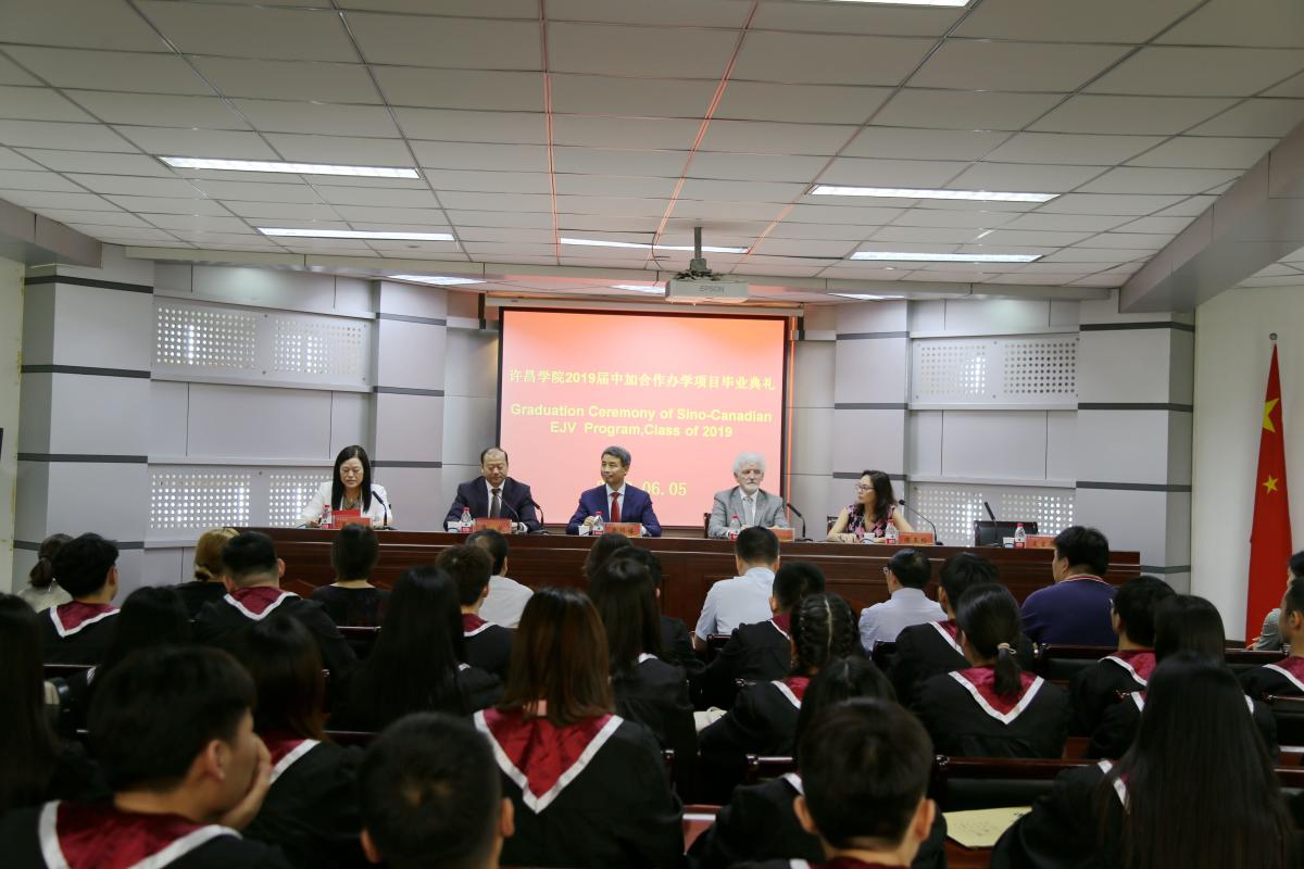 6月5日下午,我校在办公楼第三会议室举行2019届中加合作办学项目毕业典礼。荷兰学院院长Sandy McDonald,许昌学院院长岳修峰、副院长崔斌,荷兰学院国际部主任Jolene Chan出席毕业典礼。我校教务处、学生处、国际交流与合作处、团委、国际教育学院、商学院、旅游(历史文化)学院等单位主要负责人、教师代表及2019届中加市场营销、酒店管理项目毕业生参加了毕业典礼。典礼仪式由许昌学院副院长崔斌、国际教育学院院长孟凡韶主持。
