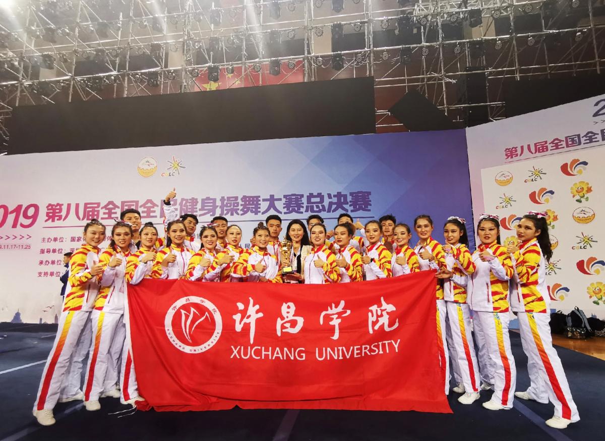 我校体育学院cheer shining体育艺术与表演团共选派出22位优秀选手参加了本次比赛四个项目的角逐,最终取得大学体育院校高水平综合齐舞自选、大学体育院校高水平民族轻器械健身操舞、大学体育院校高水平表演轻器械健身操舞三个项目的冠军,大学体育院校高水平有氧健身操舞亚军,2019全国全民健身操舞总决赛最佳人气奖的优异成绩,我校赵晨子老师也同时荣获优秀教练称号。(图片由体育学院提供)