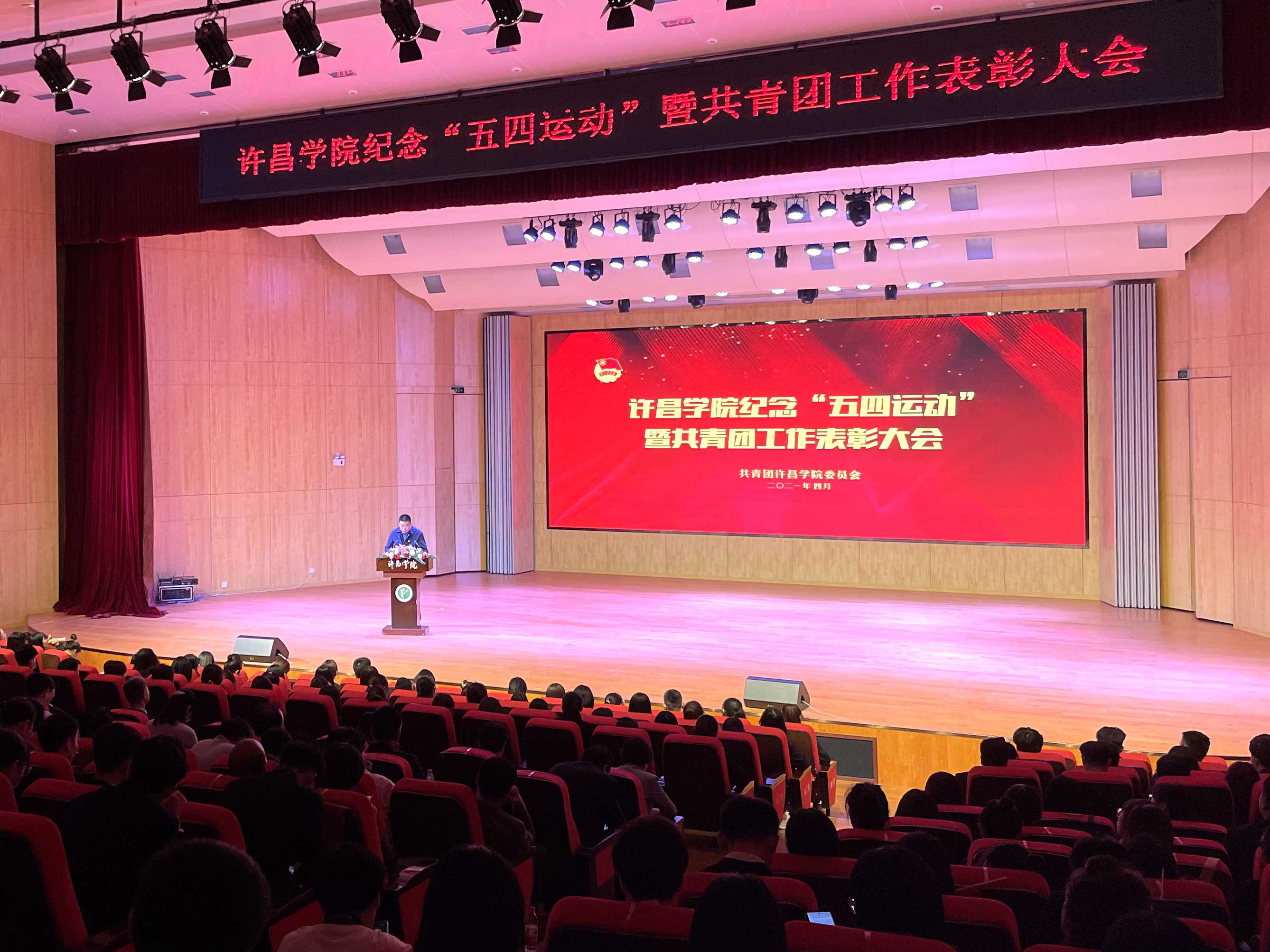 4月29日下午,我校纪念“五四运动”暨共青团工作表彰大会在艺术楼音乐厅举行。党委书记闫纪建,院长岳修峰,党委副书记孙海,党委副书记、工会主席郭涛,副院长郑直、崔斌、黄怡俐、高金星、潘春彩出席会议。学校相关职能部门负责人,各二级学院党委书记、副书记,团学代表,受表彰的集体和个人参加会议。