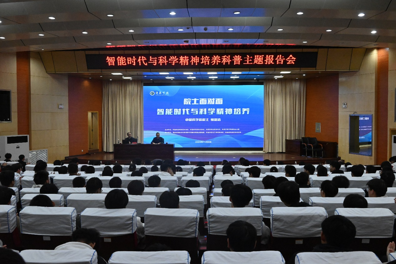 11月9日下午,“感动中国”2022年度人物、中国科学院院士褚君浩到我校作《院士面对面——智能时代与科学精神培养》主题报告会,校长郑直、副校长杜根远出席报告会,许昌市科协、市相关企业高管、高校及中学师生代表等400余人现场参会。报告会由杜根远主持。